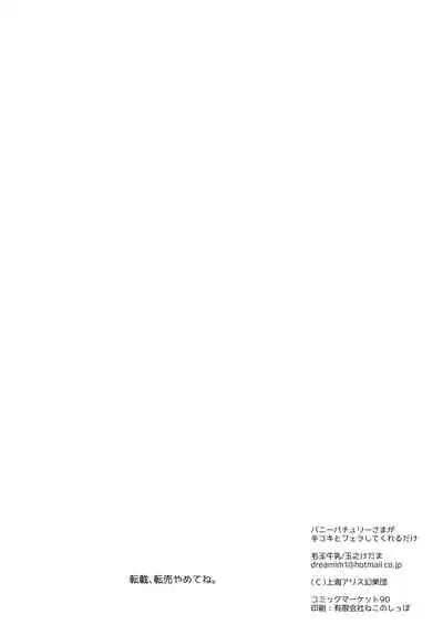 [Kedama Gyuunyuu (Tamano Kedama)] Bunny Patchouli-sama ga Tekoki to Fella Shite Kureru dake (Touhou Project) [Digital]
