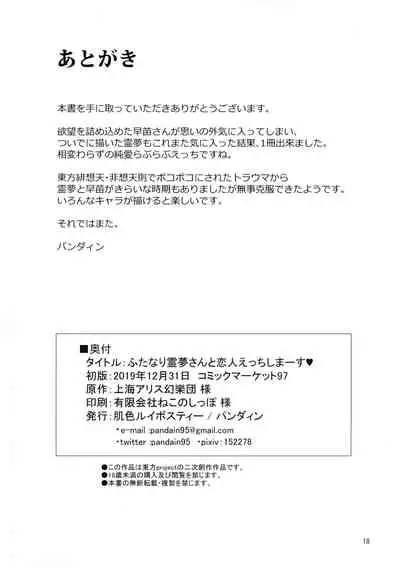 (C97) [Hadairo Rooibos Tea (Pandain)] Futanari Reimu-san to Koibito Ecchi Shima-su (Touhou Project)
