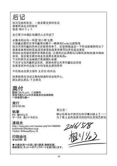 [Aiirosakura (Aikawa Ryou)] Kuubo Wo-Kyuu-chan no Amatsukaze Yuri Dorei Choukyou ~Kairaku Ochi Hen~ (Kantai Collection -KanColle-) [Chinese] [影之音个人汉化] [Digital] Hentai Porn [あいいろさくら (相川りょう)] 空母ヲ級ちゃんの天津風百合奴隷調教~快楽堕ち編~(艦隊これくしょん -艦これ-) [中国翻訳] [DL版]
