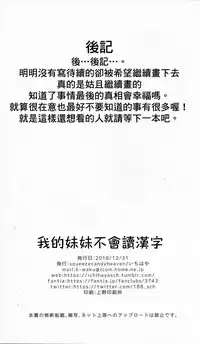 (C95) [squeezecandyheaven (Ichihaya)] Imouto wa Kanji ga Yomenai [Chinese] [Mello]