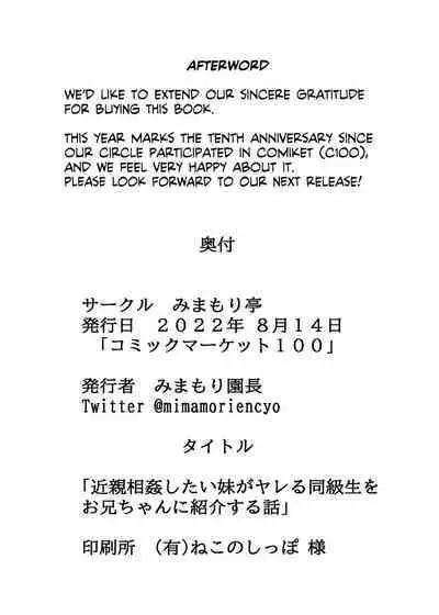 [Mimamori-tei (Mimamoriencyo)] Kinshin Soukan Shitai Imouto ga Yareru Doukyuusei o Onii-chan ni Shoukai Suru Hanashi | How a Little Sister who Wants to Engage in Incest Introduces a Slutty Classmate to her Big Bro! [Digital] [English] [Team Rabu2] Hentai Porn