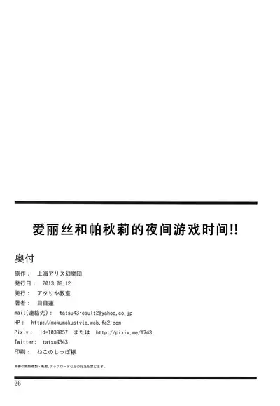 (C84) [Atariya Kyoushitsu (Mokumokuren)] Alice to Patchouli no Yoasobi Time!! | Alice and Patchouli's Night Play Time!! (Touhou Project) [English] [rqwrqw]