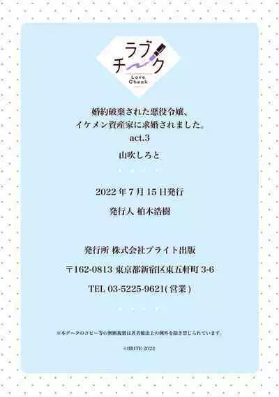 Konyaku Haki sareta Akuyaku Reijou, Ikemen Shisanka ni Kyuukon saremashita. | 被解除婚约的恶役千金,被帅哥资产家求婚了。 1-3