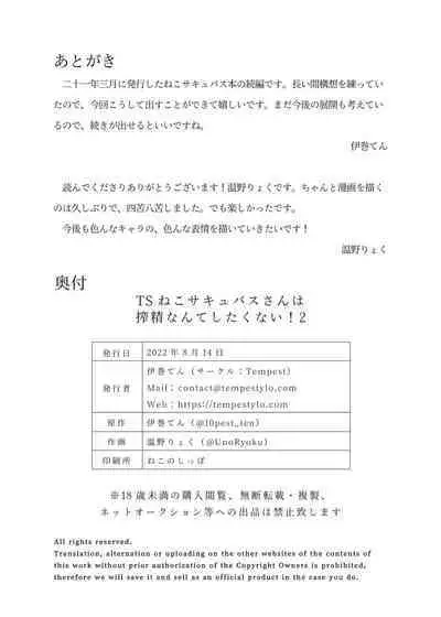 [Tempest (Imaki Ten, Uno Ryoku)] TS Neko Succubus-san wa Sakusei Nante Shitakunai! 2 [Digital]